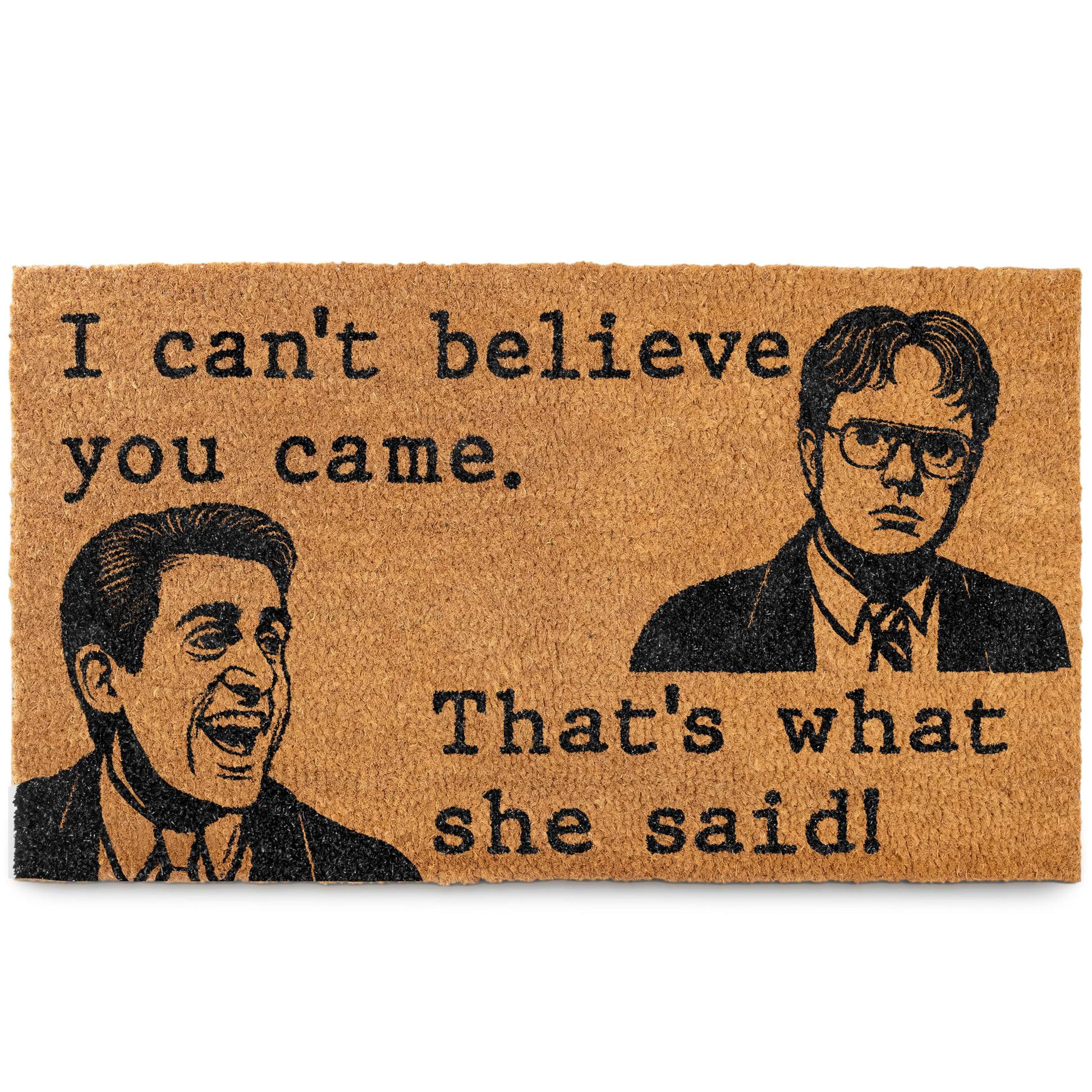 - Instant Laughs at the Door – Our Can't Believe You Came, That's What She Said sets the tone with classic cringe-worthy charm; Perfect nerd welcome mat for fans