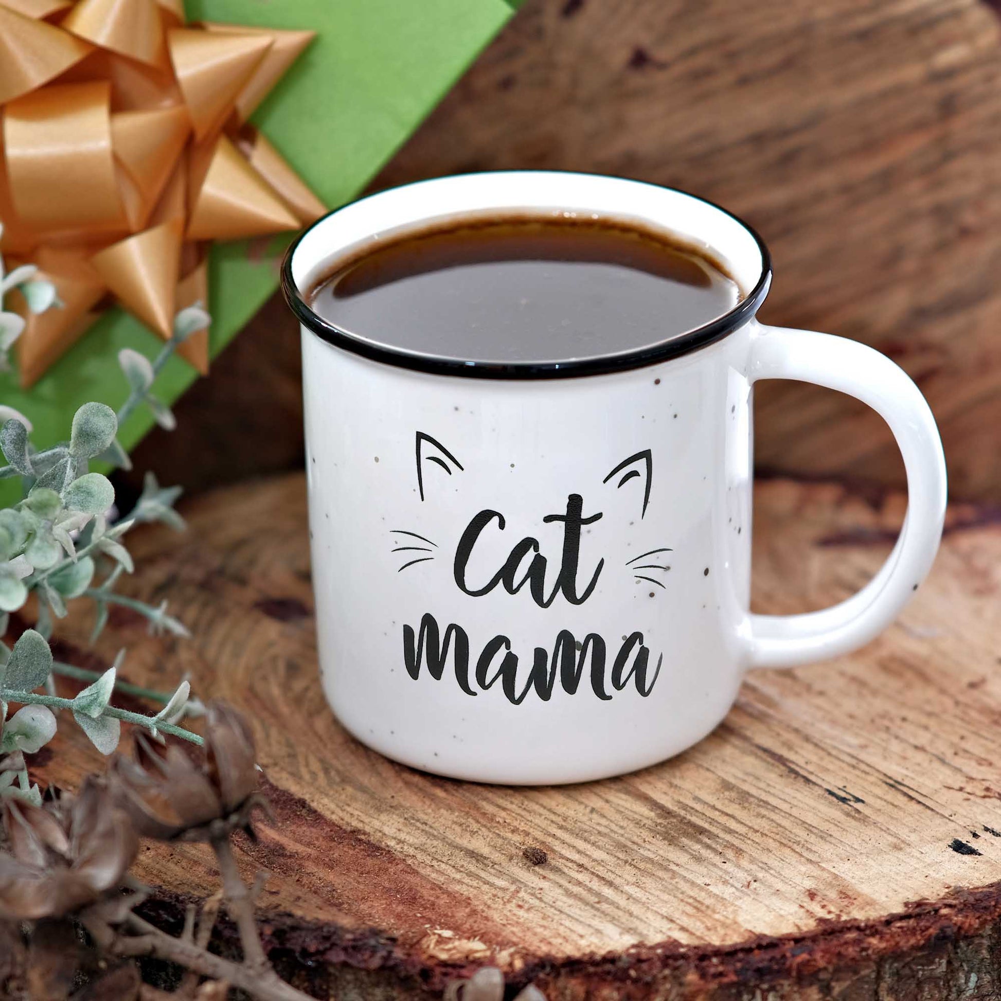 FARMHOUSE HOME DECOR - Show your cat-lover friends your love with our campfire speckled mug with sayings that says Cat Mama!