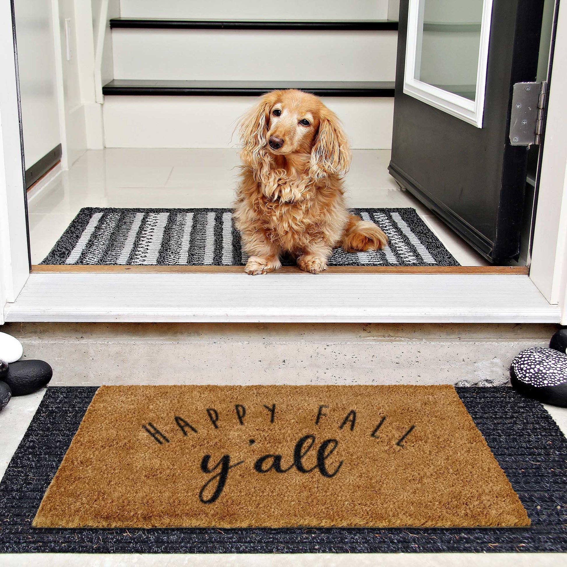 Added level of skid resistance for our outdoor Coir Mat Happy Fall Y'all coir mat is ensured with a thick, durable non-slip PVC backing