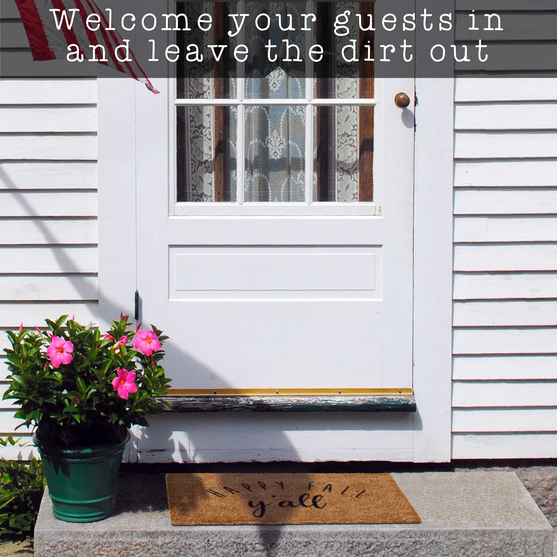 Our modern farmhouse Coir Mat Happy Fall Y'all entrance mat is made from tightly woven coco fibers .6 inch in height to endure frequent use