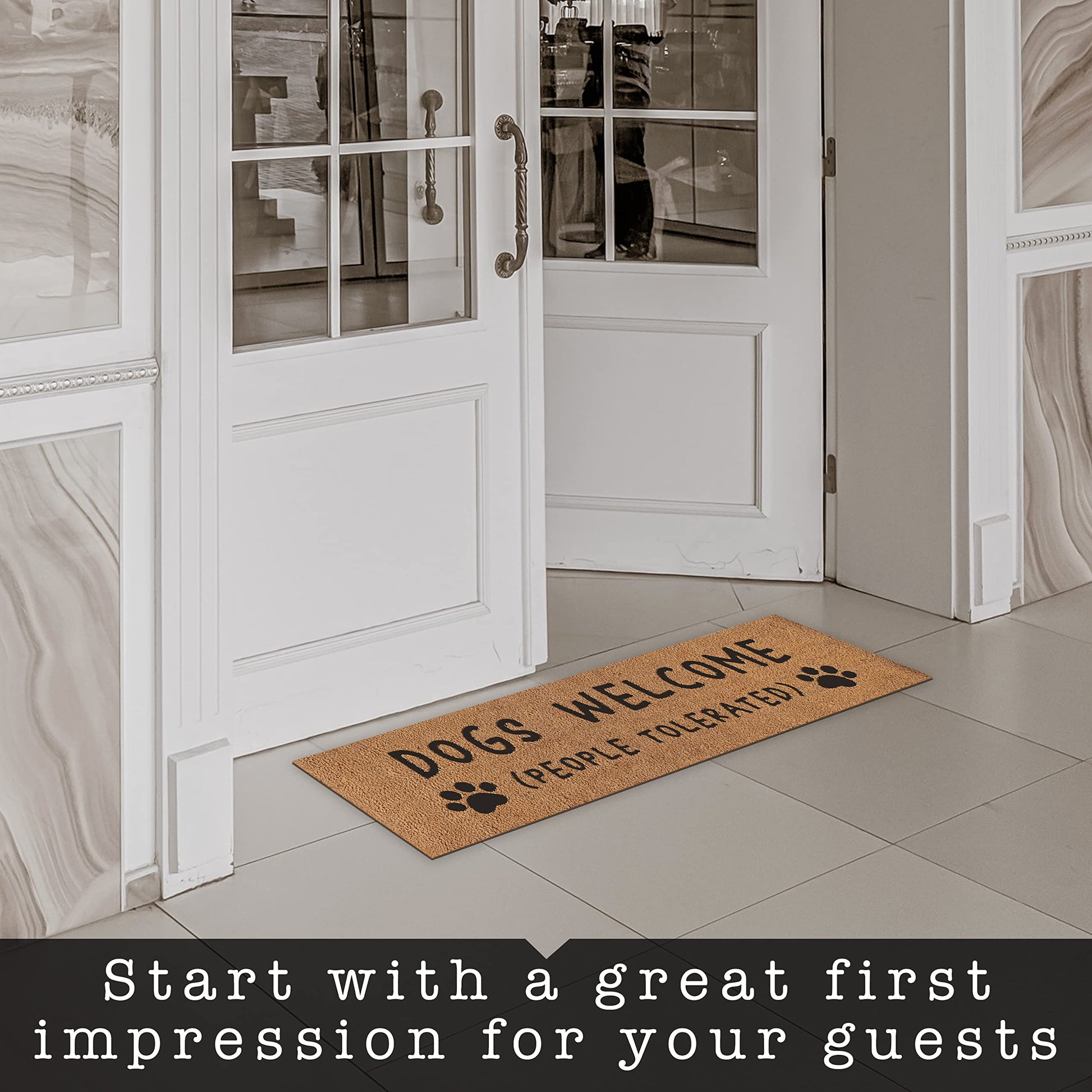 Practical year-round decor - Leave the dirt outside with our trademark pending dogs welcome people tolerated door mat; Thick welcome mats outdoor to add personality to your doorstep