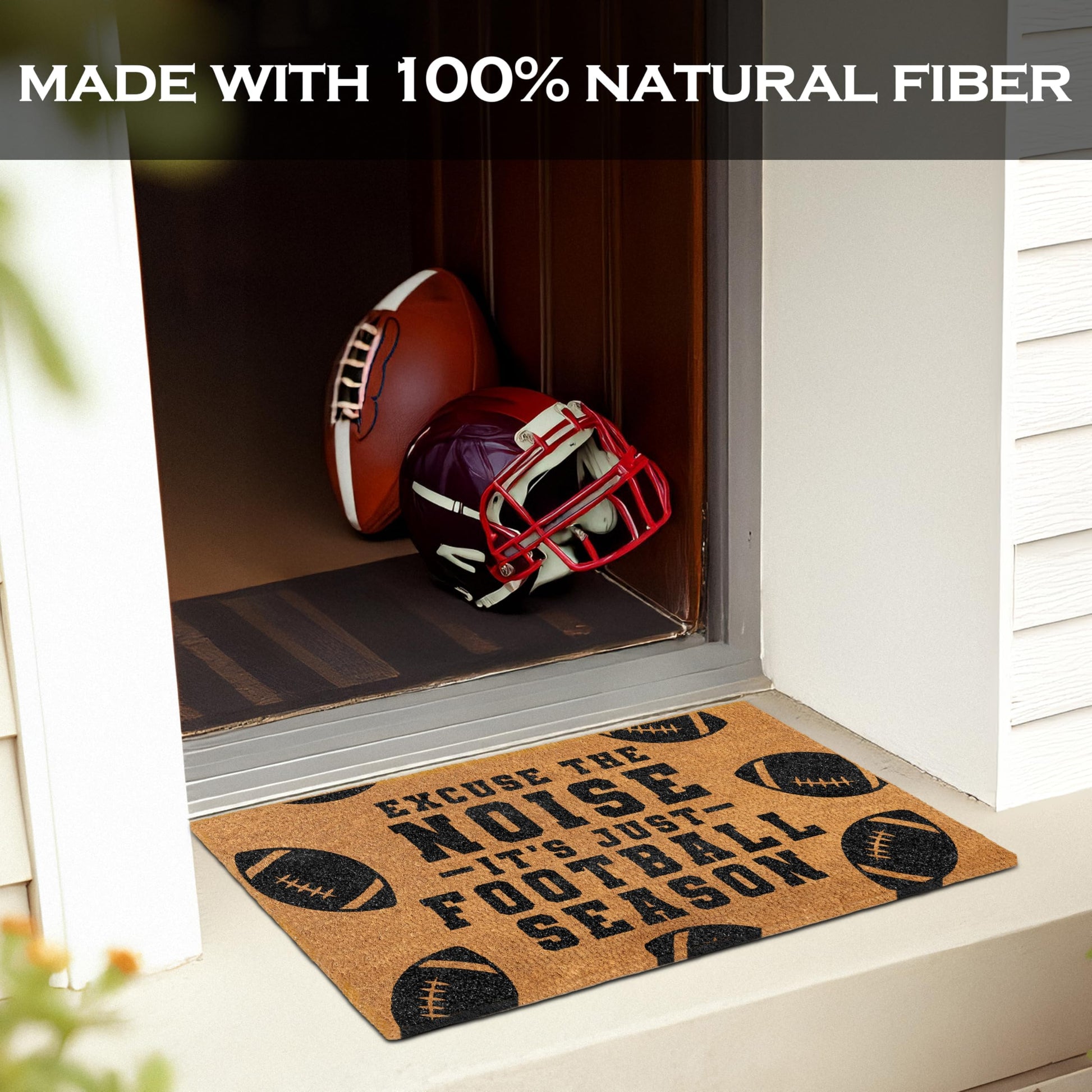 Make Every First Impression Count - Our excuse the noise its just football season mat is a football welcome mat outdoor to greet your guests; Fall football welcome mat for the home