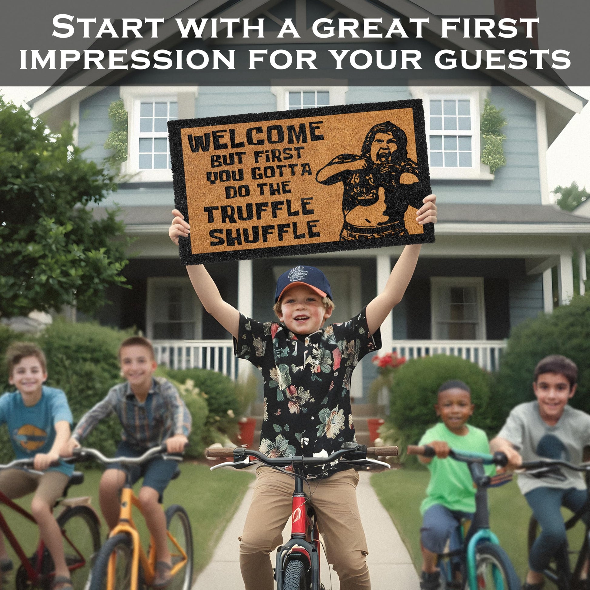 - Adventure Starts at the Door – Our first you gotta do the shuffle door mat brings a bold welcome to your space; Great for fans with a nostalgic streak