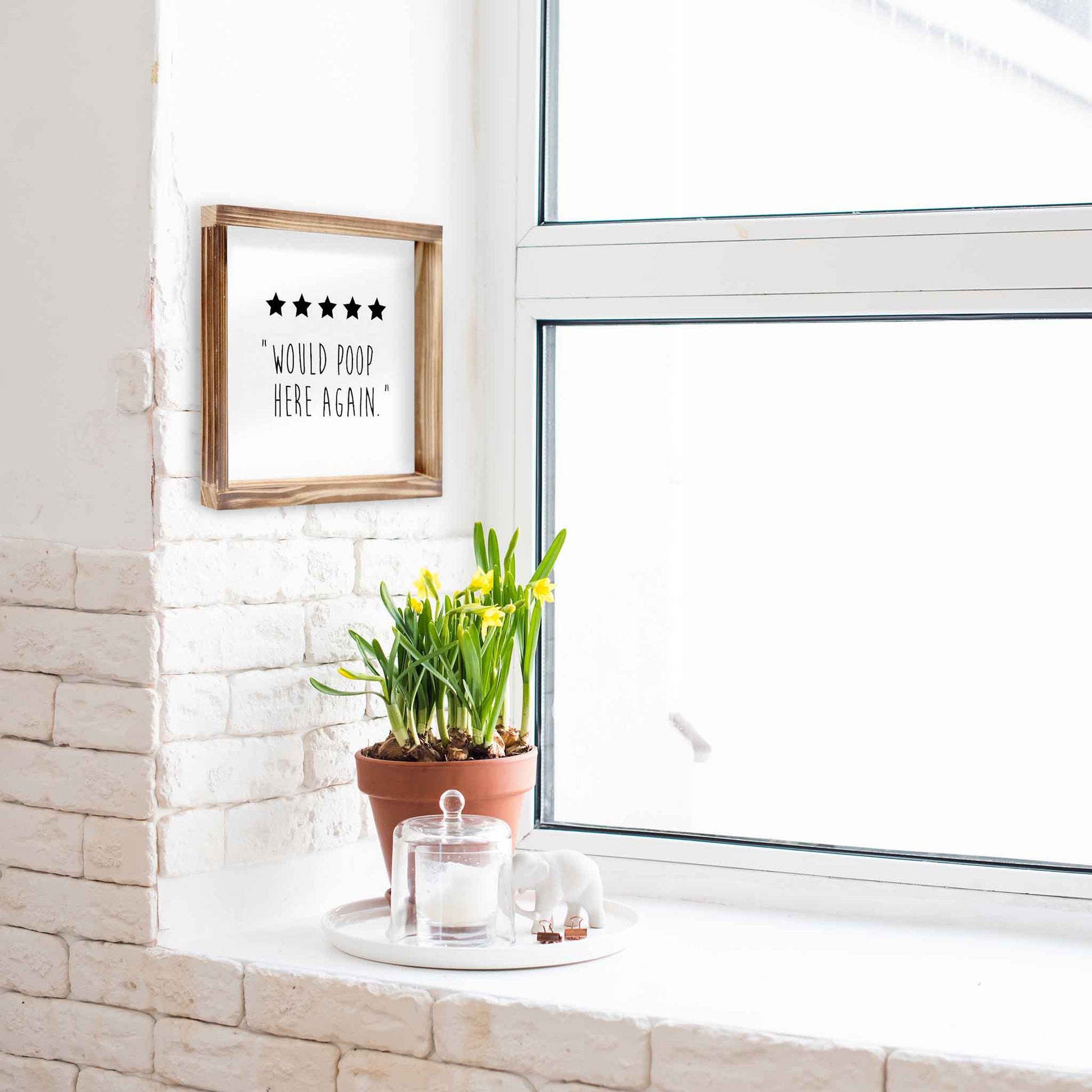 Five Stars Would Poop Here Again Sign - Funny Farmhouse Bathroom Decor Sign 12x12