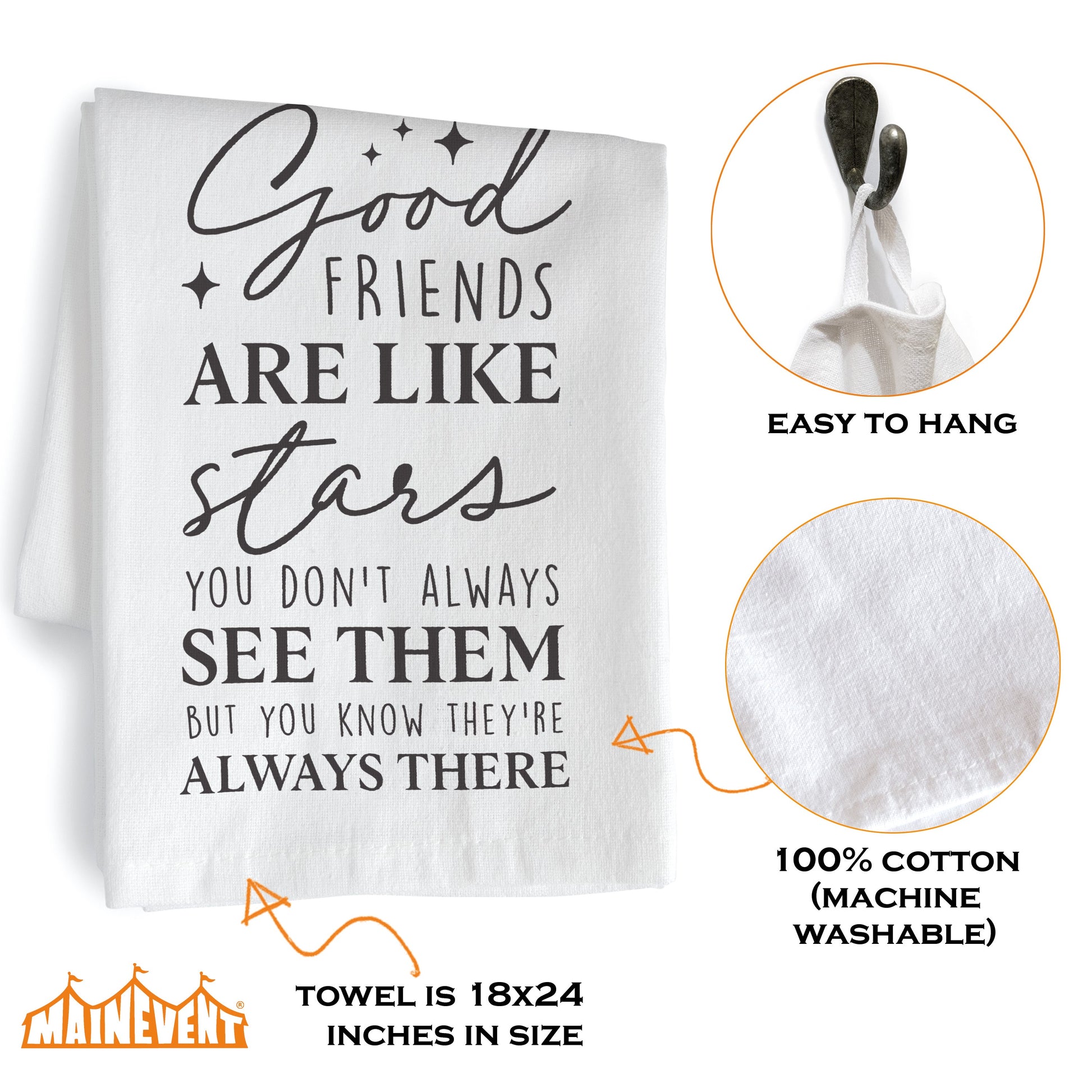 Bring joy to your kitchen with our Good Friends are Like Stars, You Don't Always See Them But You Know They Are There dish towel and get a quick laugh from guests