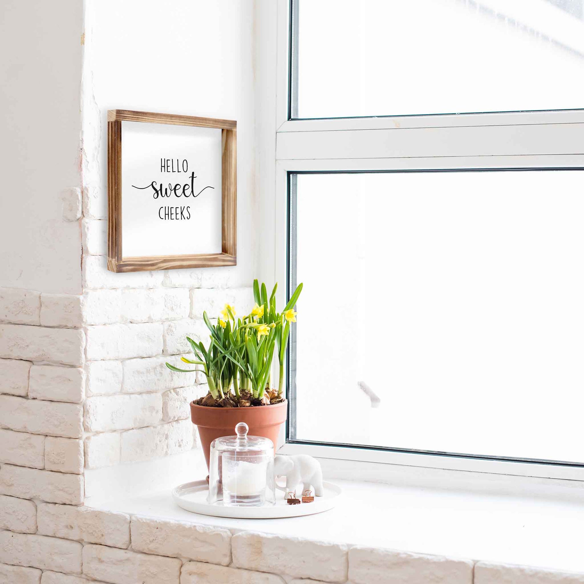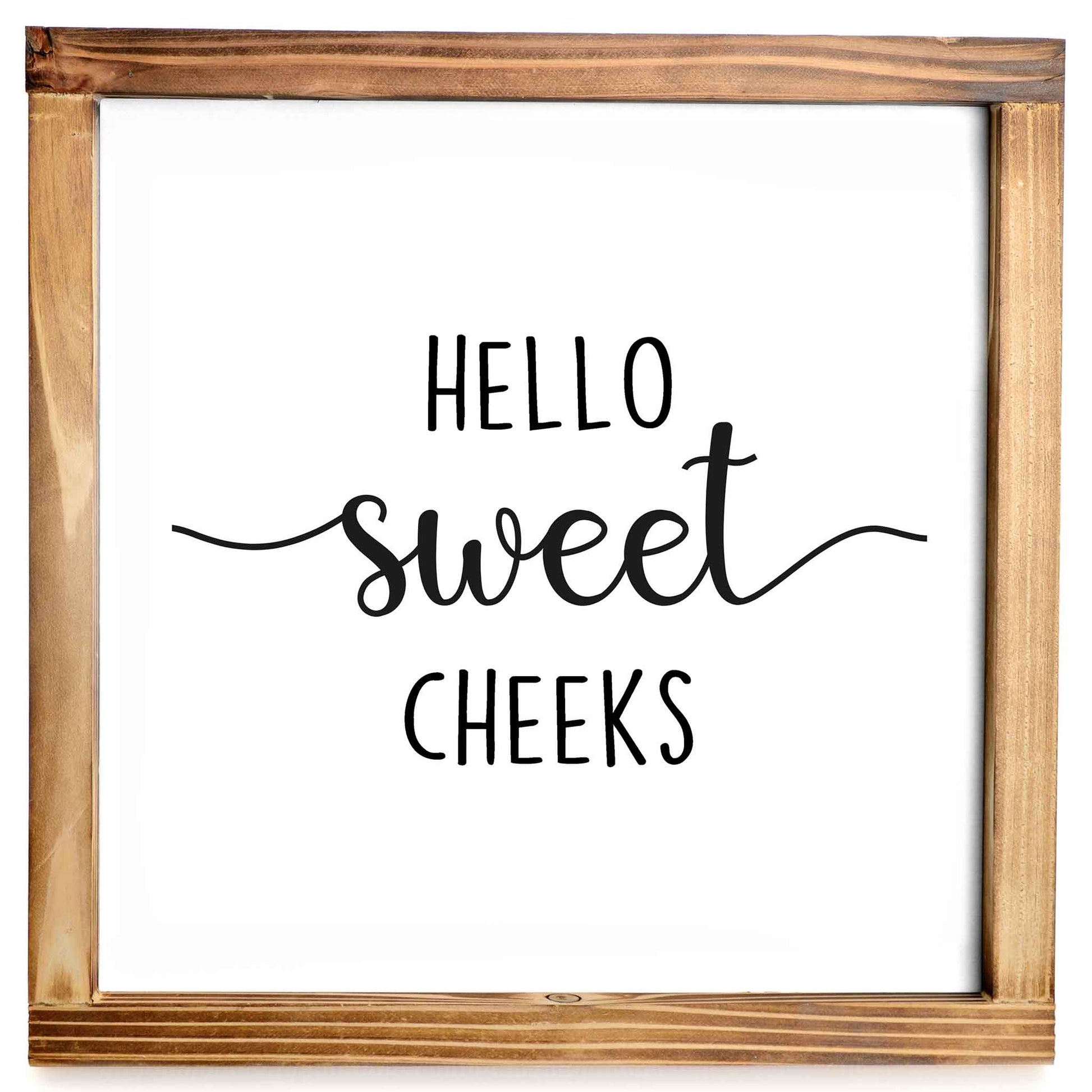 Hello Sweet Cheeks Sign - Funny Farmhouse Bathroom Decor Sign 12x12