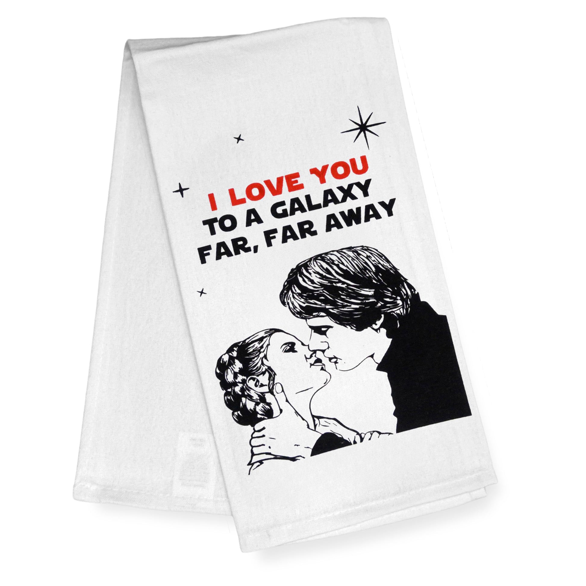 Loved by Sci-Fi Party Guests - Our I love you to the galaxy far, far away kitchen towel is a perfect s wars kitchen towel to keep guests entertained