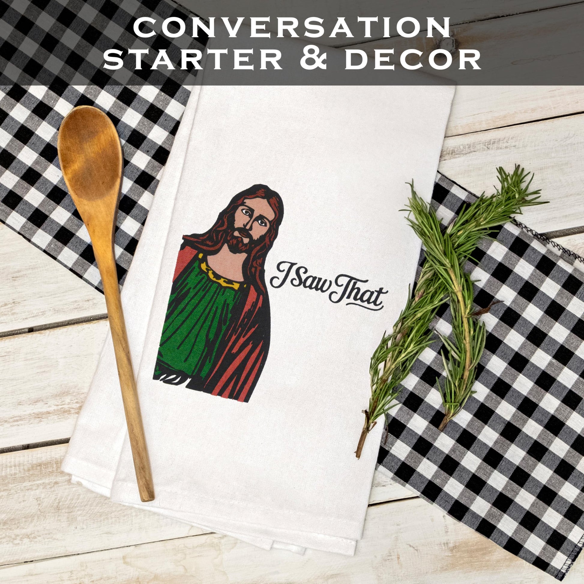 Heaven-Sent Gift Idea – Perfect funny dish towel for religious friends with a sense of humor, or anyone who appreciates a good faith-based chuckle