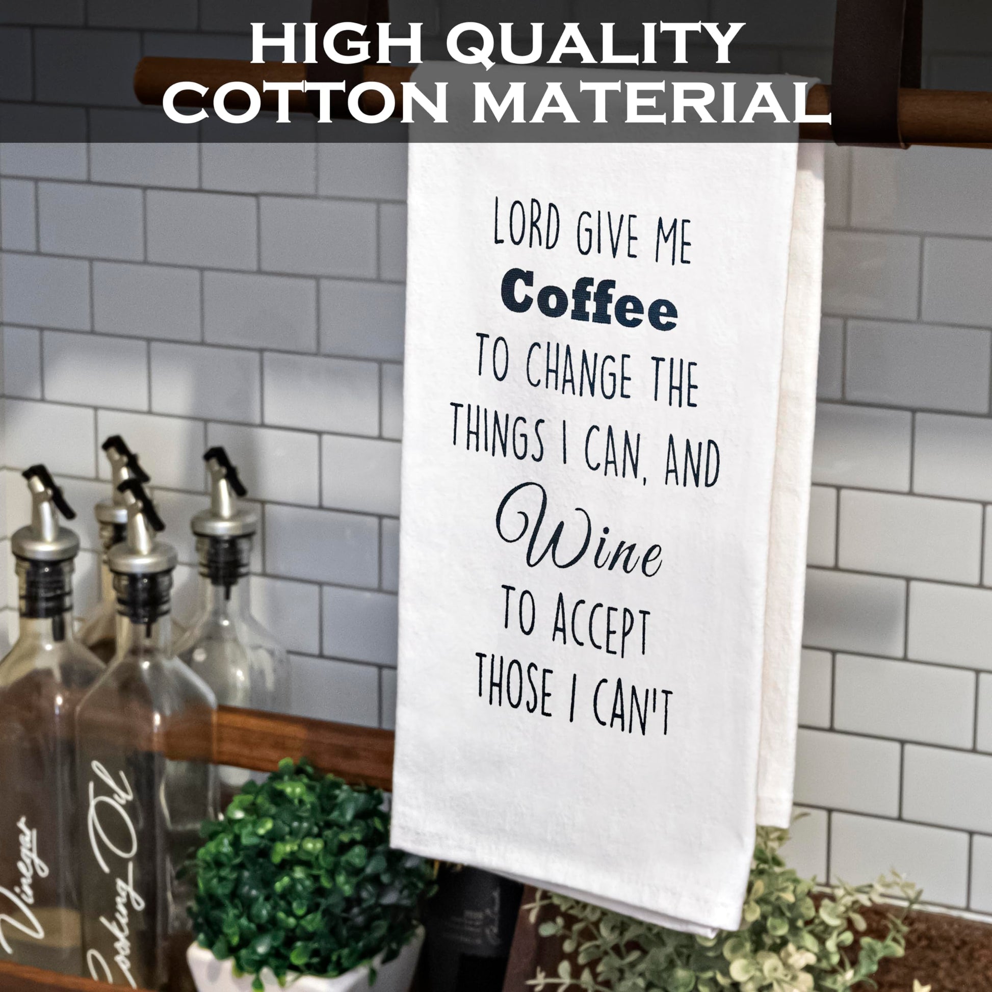 Towel-ly Hilarious - Bring joy to your kitchen with our Lord Give Me Coffee To Change The Things I Can and Wine to Accept Those I Can't funny kitchen towel and get a quick laugh from guests; Novelty tea towels that brighten your happy place