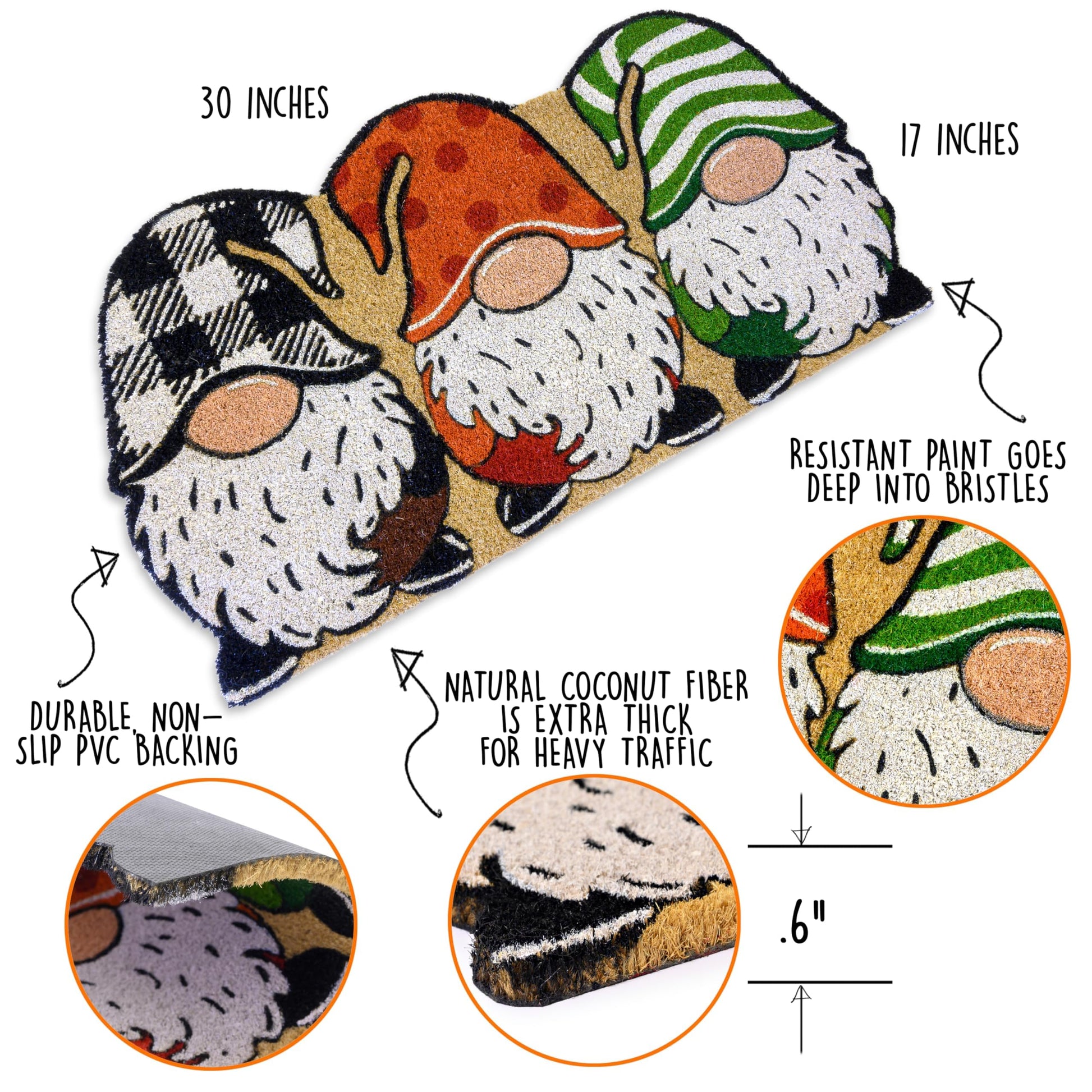 Durability in every fiber - Made with 100% natural fiber, our gnome mat is durable; Christmas doormat that is hand-crafted and sturdy to handle high-traffic areas
