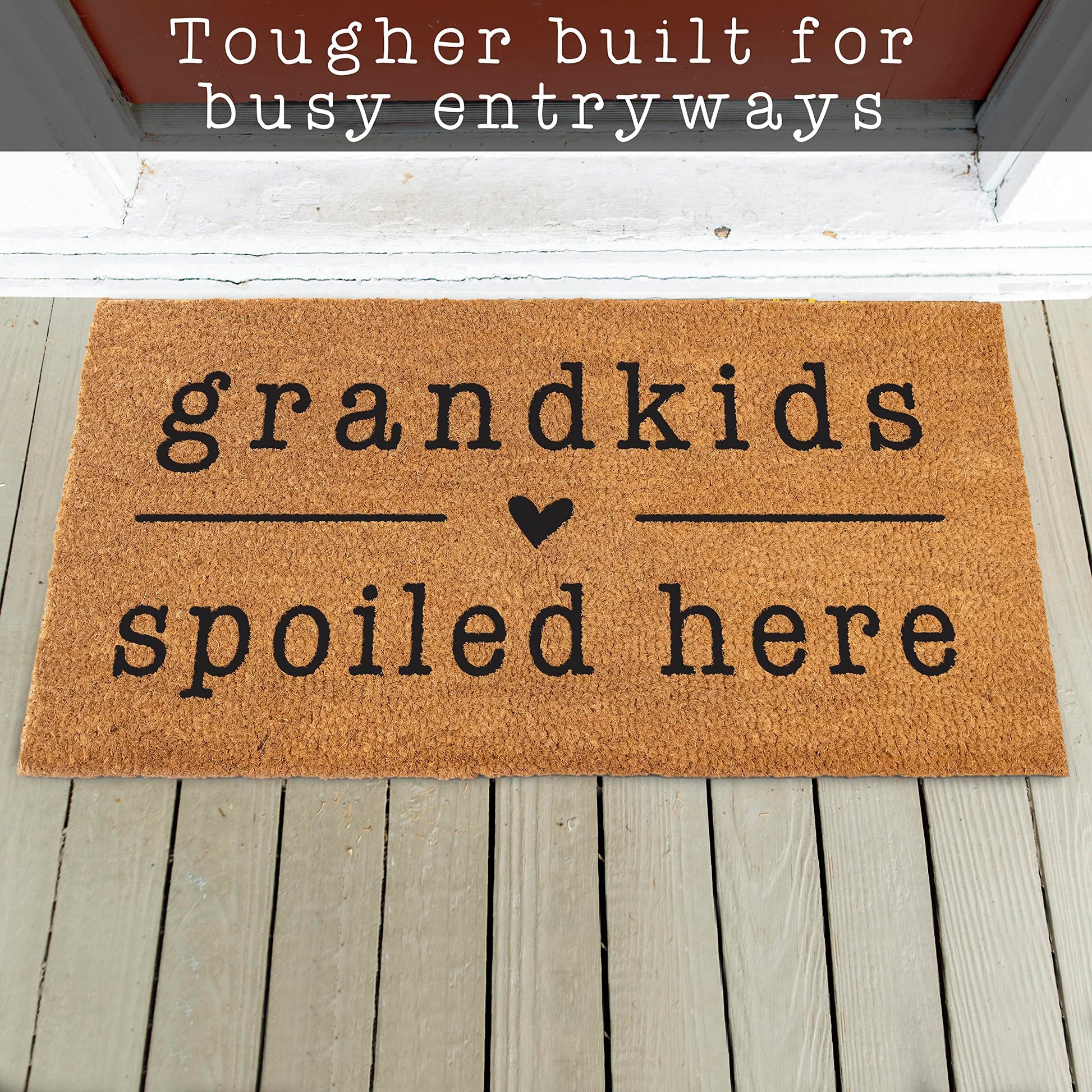 Durability in every fiber - Tightly woven coco fibers .6 inch in height make our grandkids welcome door mat durable; Grandkids welcome mat for nana and papas house door mat