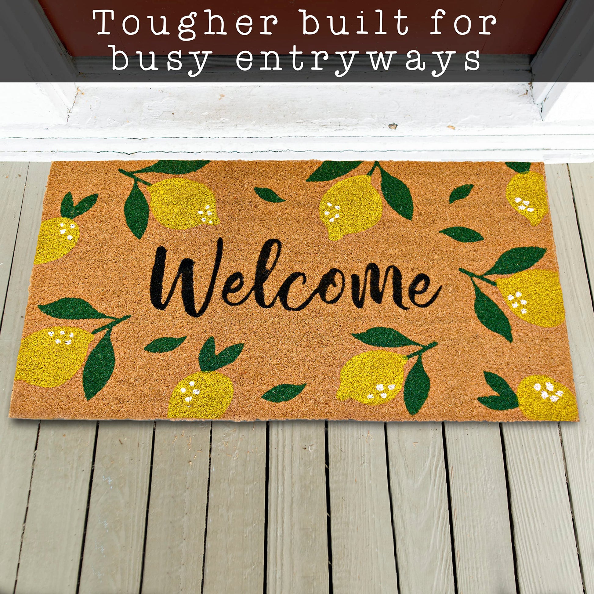 Perfect year-round decor - Welcome guests with a burst of citrus with our lemon welcome mat; lemon door mat coir doormat to welcome your guests all year round