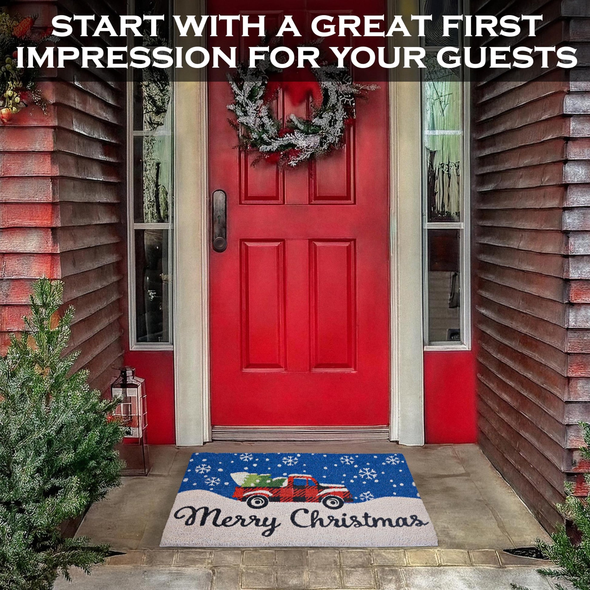 Functional winter decor - Add holiday cheer to your entryway with our christmas red truck rug door mat; Christmas truck rug that's perfect for the season
