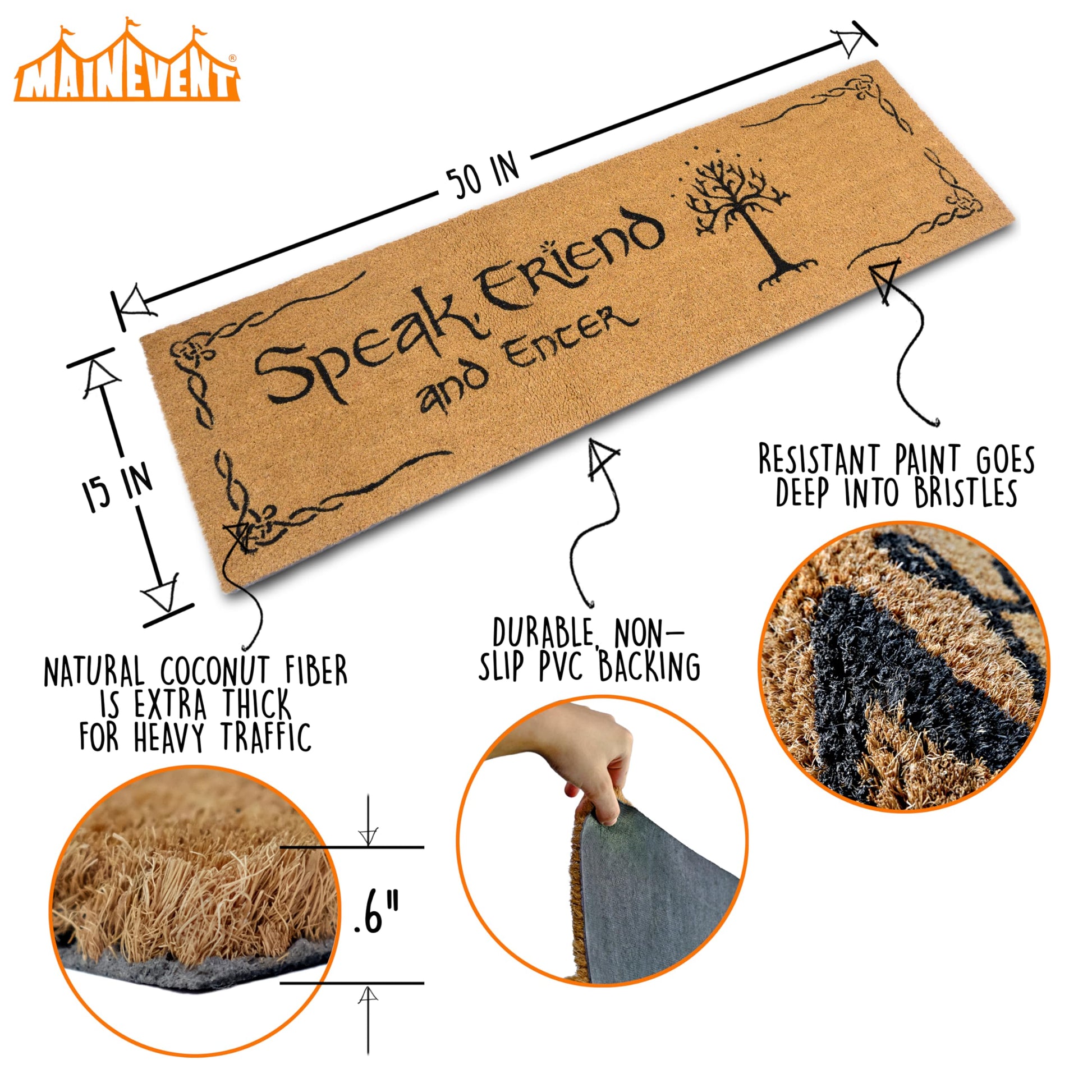 Durability in every fiber - Tightly woven coco fibers .6 inch in height make our lord of the rings decor gamer door mat coir durable; Geeky door mat lotr gifts for friends and family