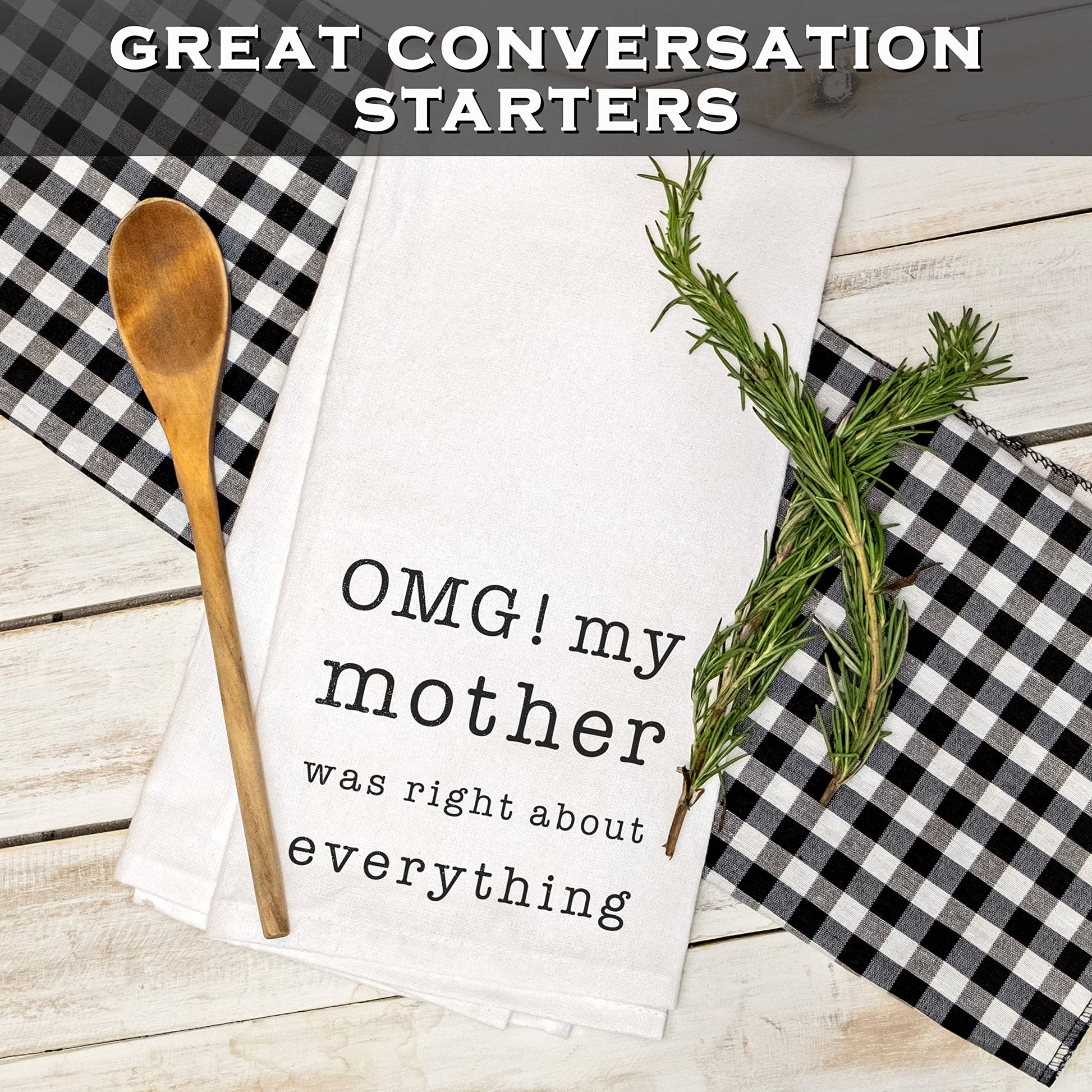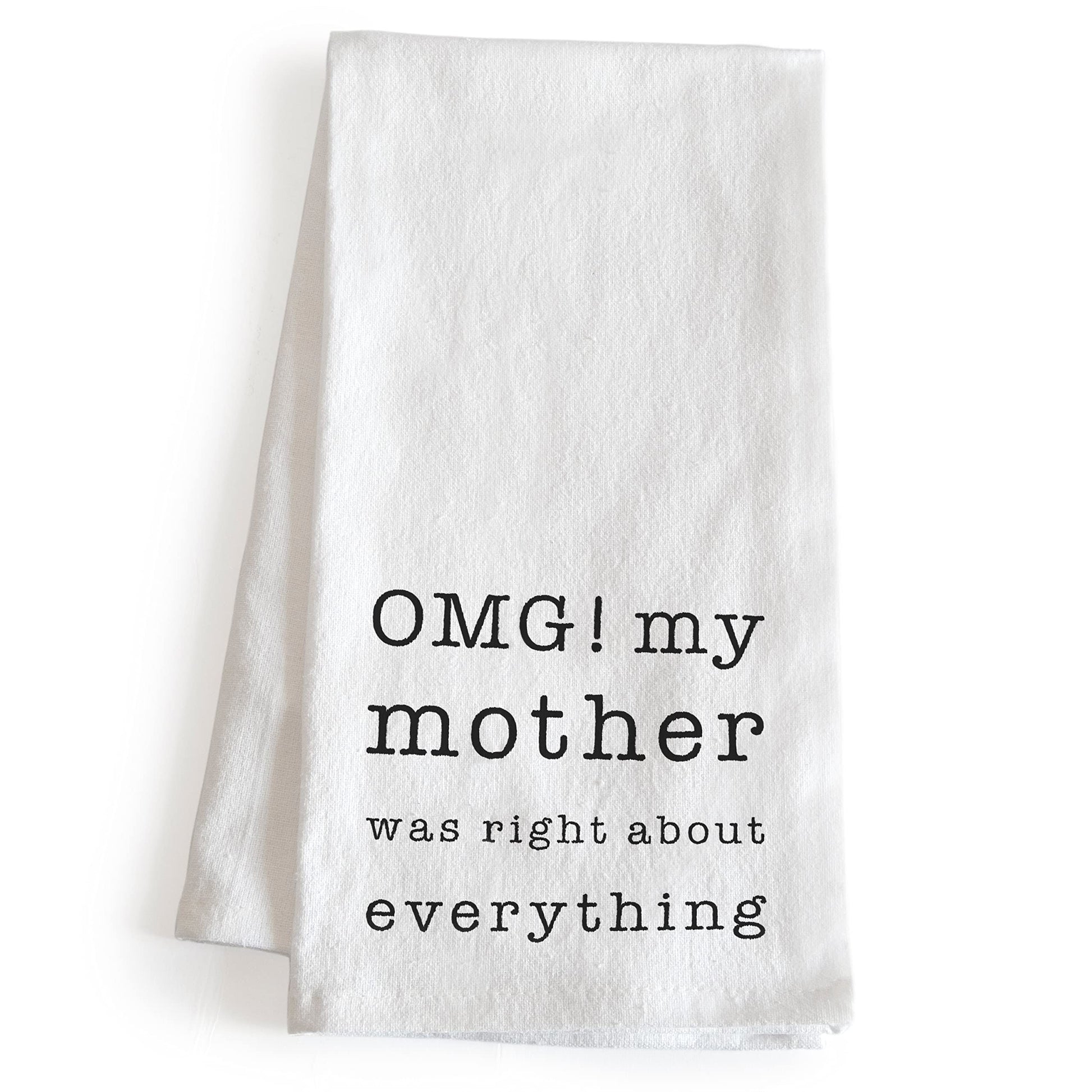 Bring joy to your kitchen with our Omg My Mother Was Right About Everything dish towel and get a quick laugh from guests; Novelty tea towels brighten your happy place as you cook and celebrate