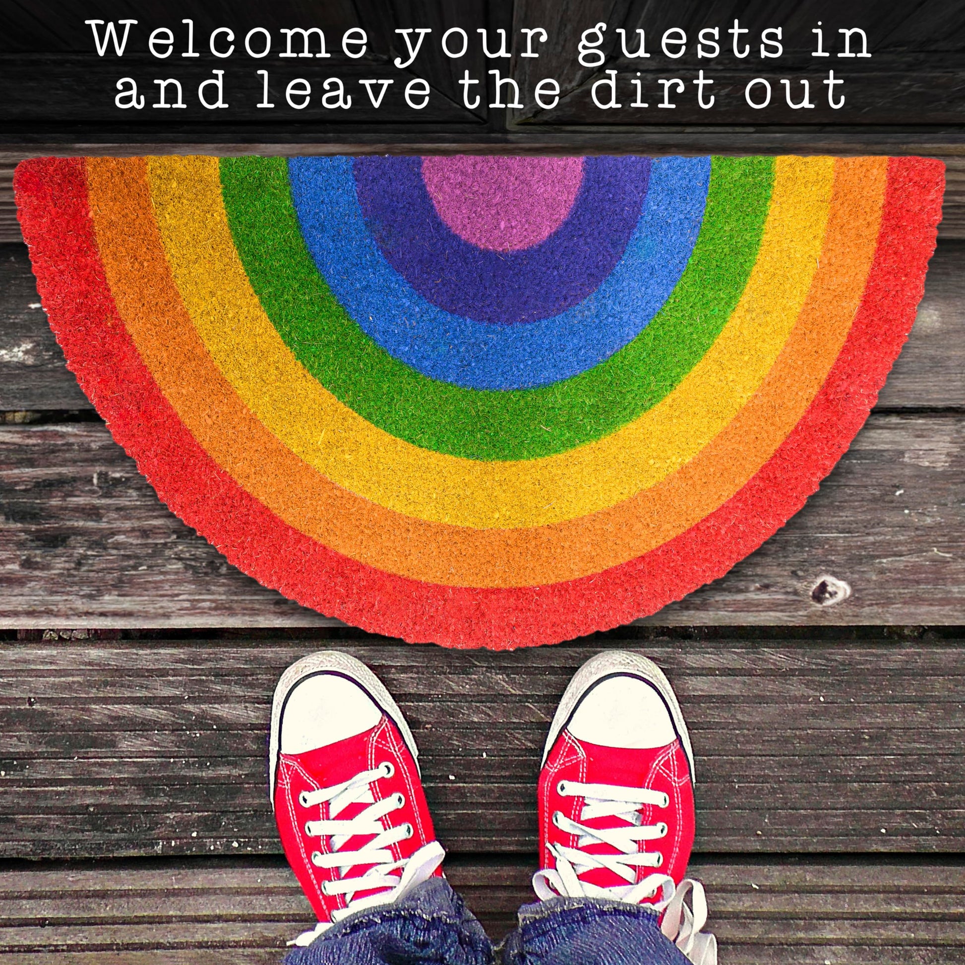 Practical year-round decor - Leave the dirt outside with our rainbow doormat; Rainbow welcome mat outdoor to add personality to your doorstep