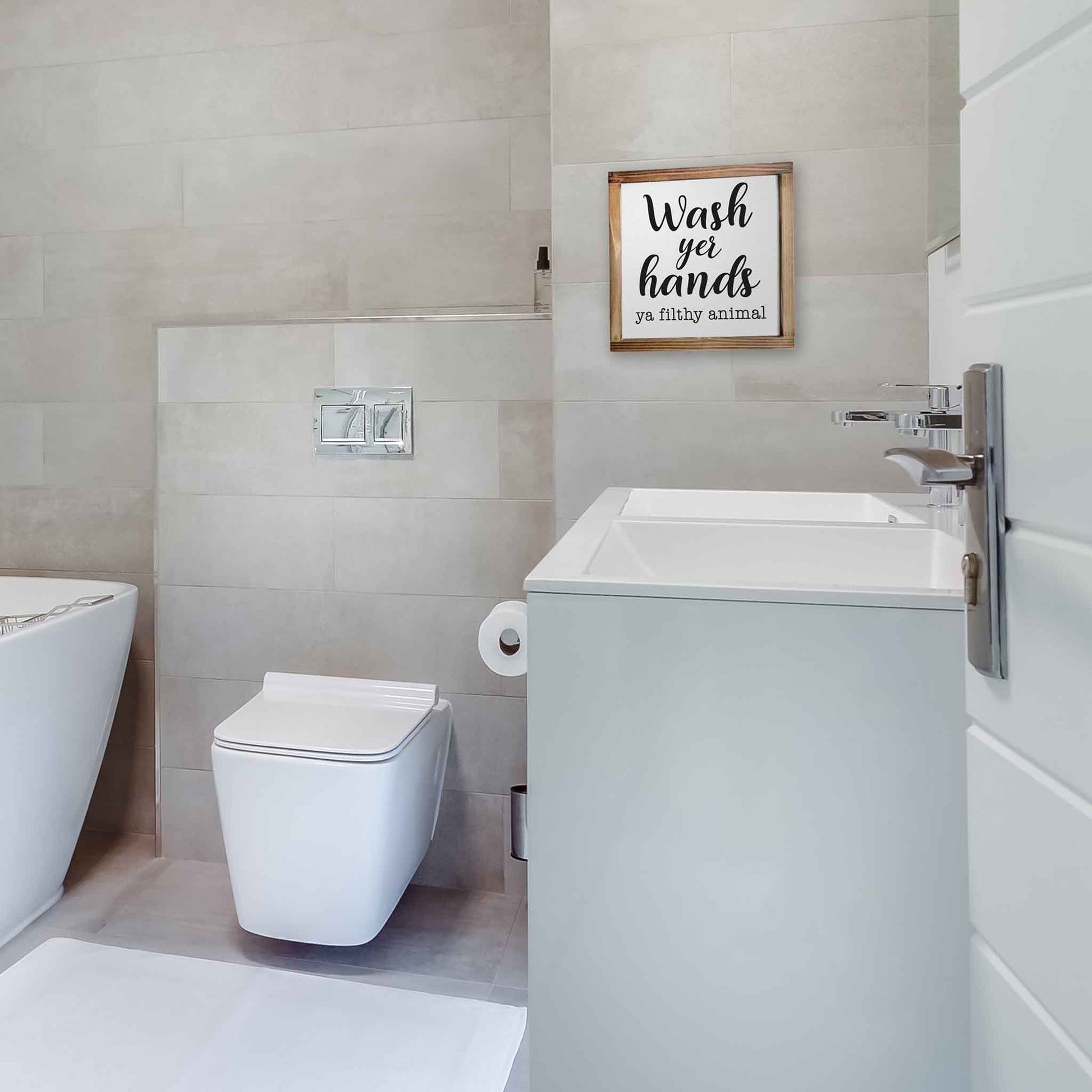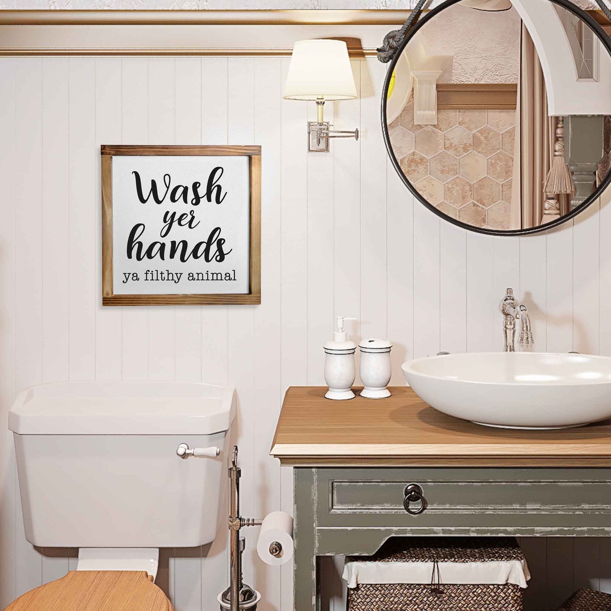 Wash Your Hands Ya Filthy Animal Sign - Funny Farmhouse Bathroom Decor Sign 12x12