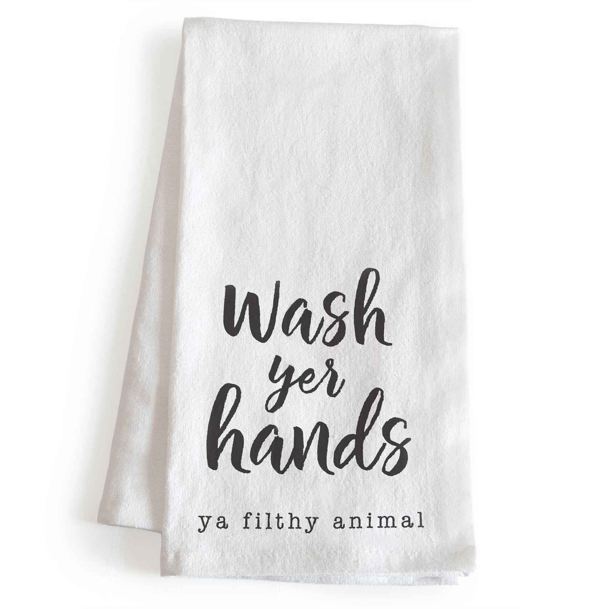Bring joy to your kitchen with our Wash Your Hands Ya Filthy Animal towel and get a quick laugh from guests; Novelty tea towels brighten your happy place as you cook and celebrate
