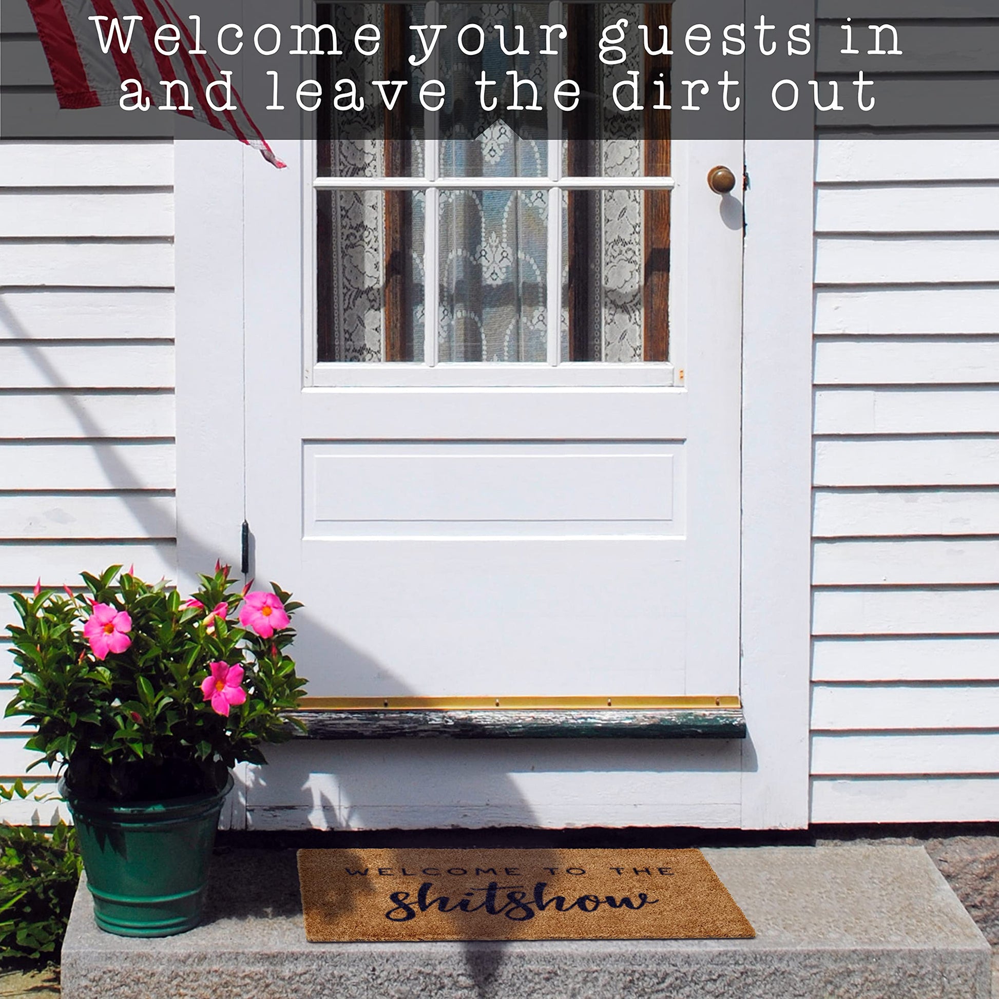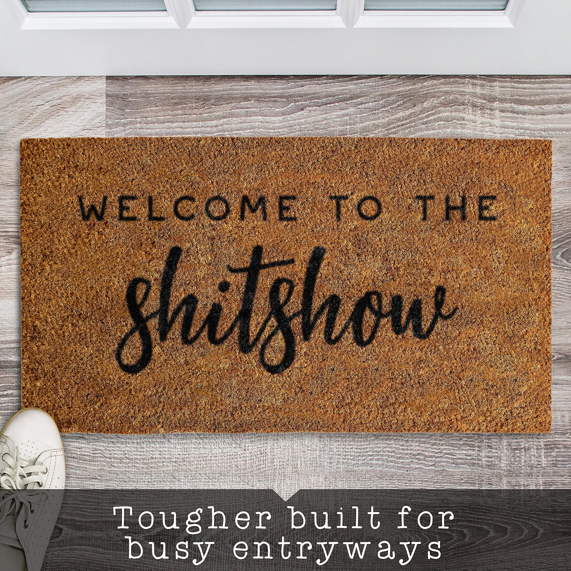 Steady and slip-free - Added level of skid resistance for our Welcome to the Shitshow coir mat is ensured with a thick, durable non-slip PVC backing; doormat outdoor entrance year-round decor
