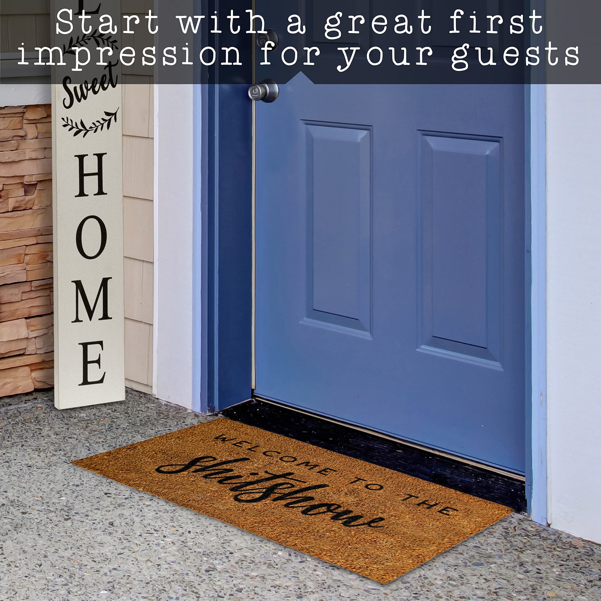 Durability in every fiber - Our funny welcome mat for front door are made from tightly woven coco fibers .6 inch in height to endure frequent door mat outdoor use
