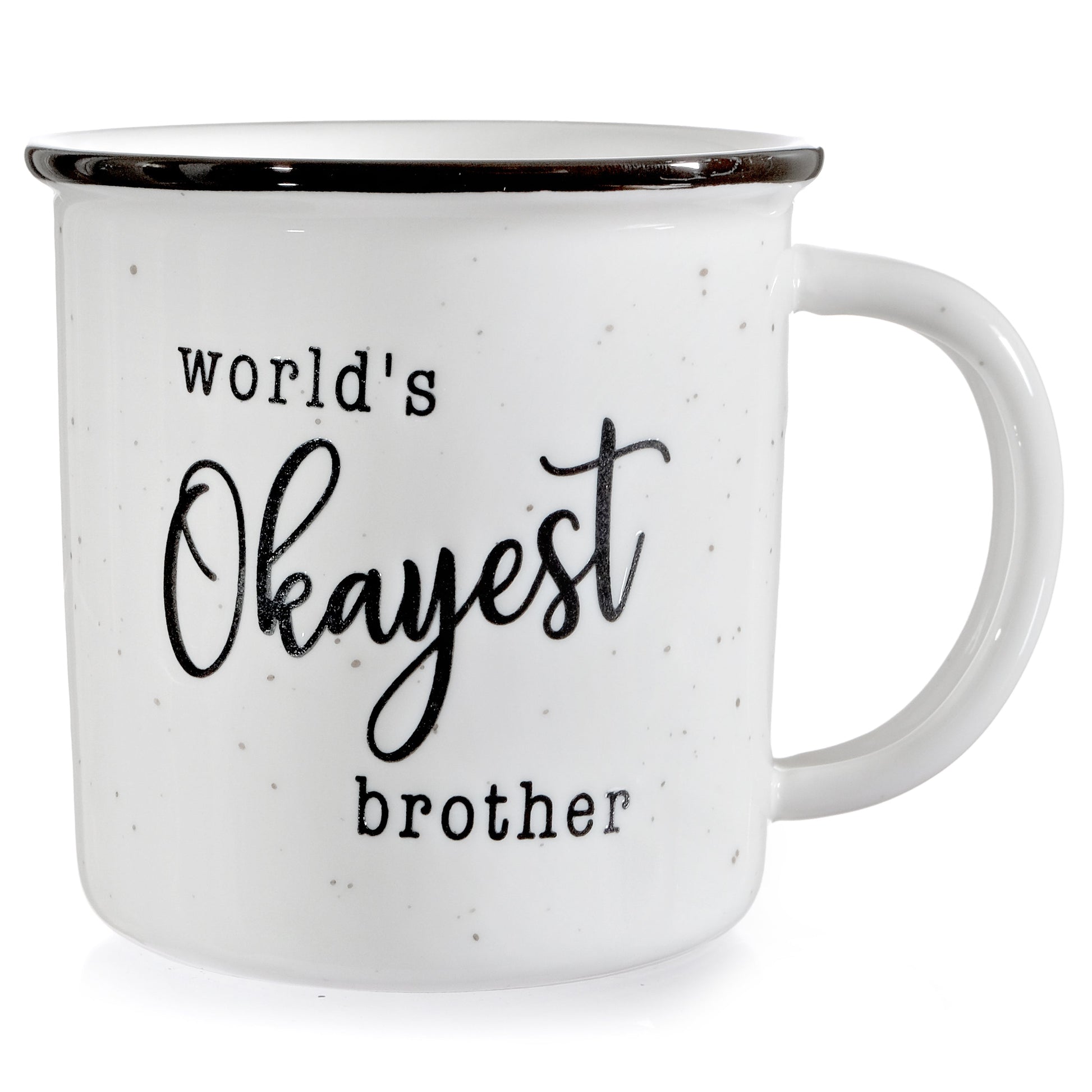 FARMHOUSE HOME DECOR - Show your brother your love for them with our funny campfire speckled mug with sayings that says World's Okayest Brother.